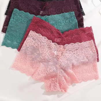 Culotte en dentelle personnalisée pour femmes, taille moyenne, respirante, logo gaufré, ceinture, coupe confortable, sous-vêtements de tous les jours, vente en gros EU